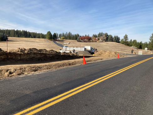 Whitworth Water stopped them because they thought there was a ARV (Air Release Valve) in that area, but it turns out there are waterlines on each side of Little Spokane Road, and the one on the other side of the street is the one with the ARV at the location. Problem averted!